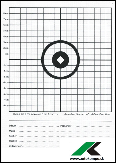 Papierový terč rozmeru A4 s rozsahom ± 9 cm